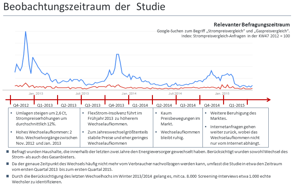 Mit der Vertriebskanalstudie Energie wird jährlich anhand von Befragungen mit echten Strom- und Gaswechslern der Wechselprozess vom Anlass bis zum Abschlusskanal transparent gemacht.